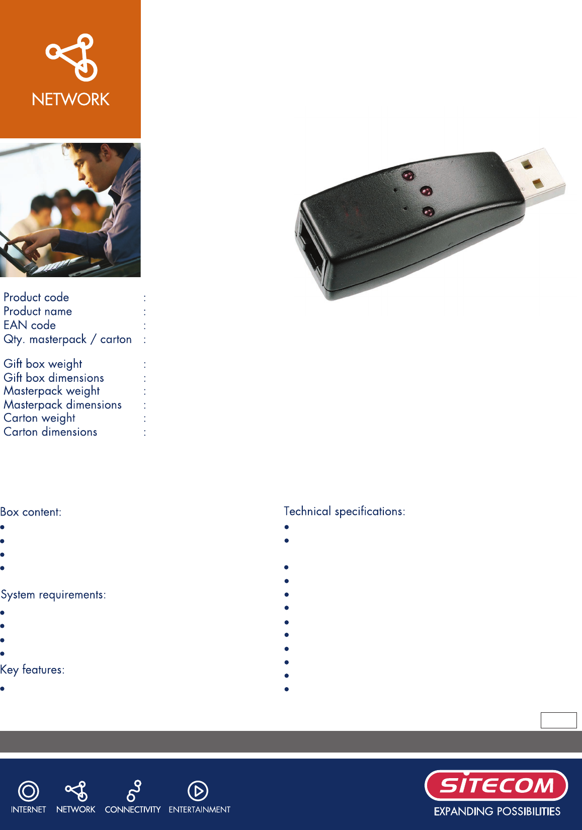 This very small-dimensioned network adapter is connected via the USB port of the computer. Thanks to the USB’s