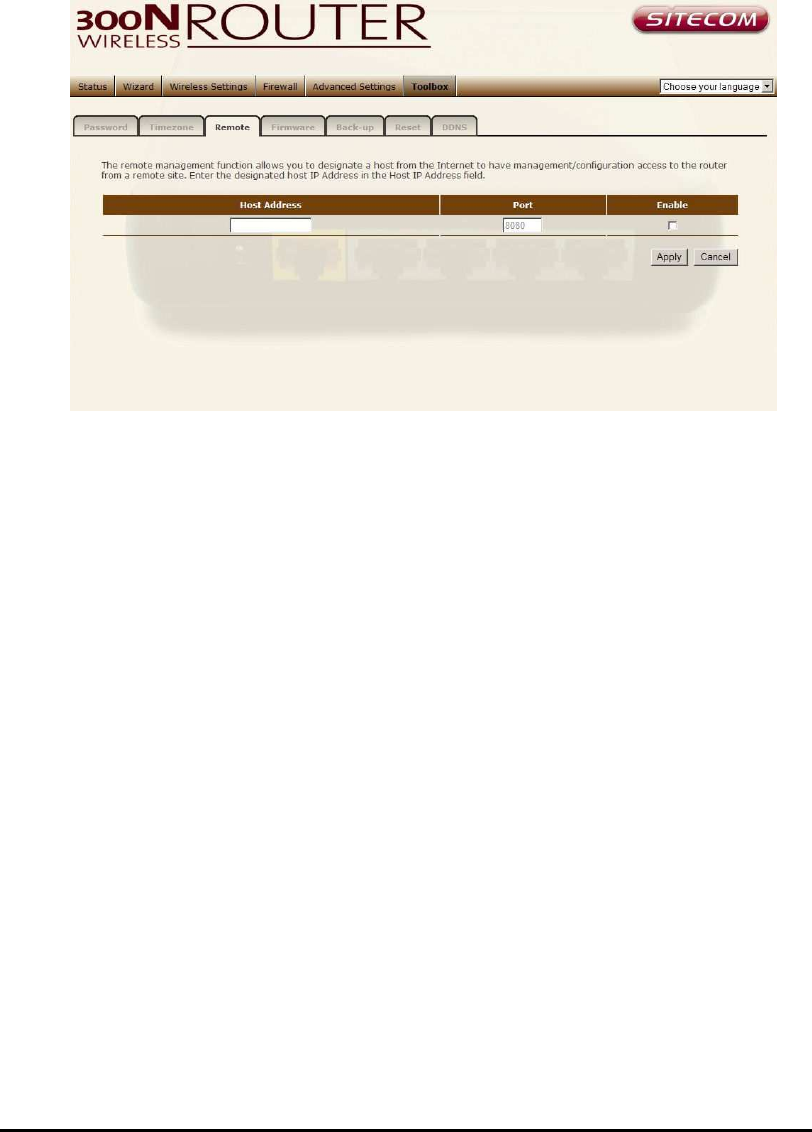 The remote management function allows you to designate a host in the
