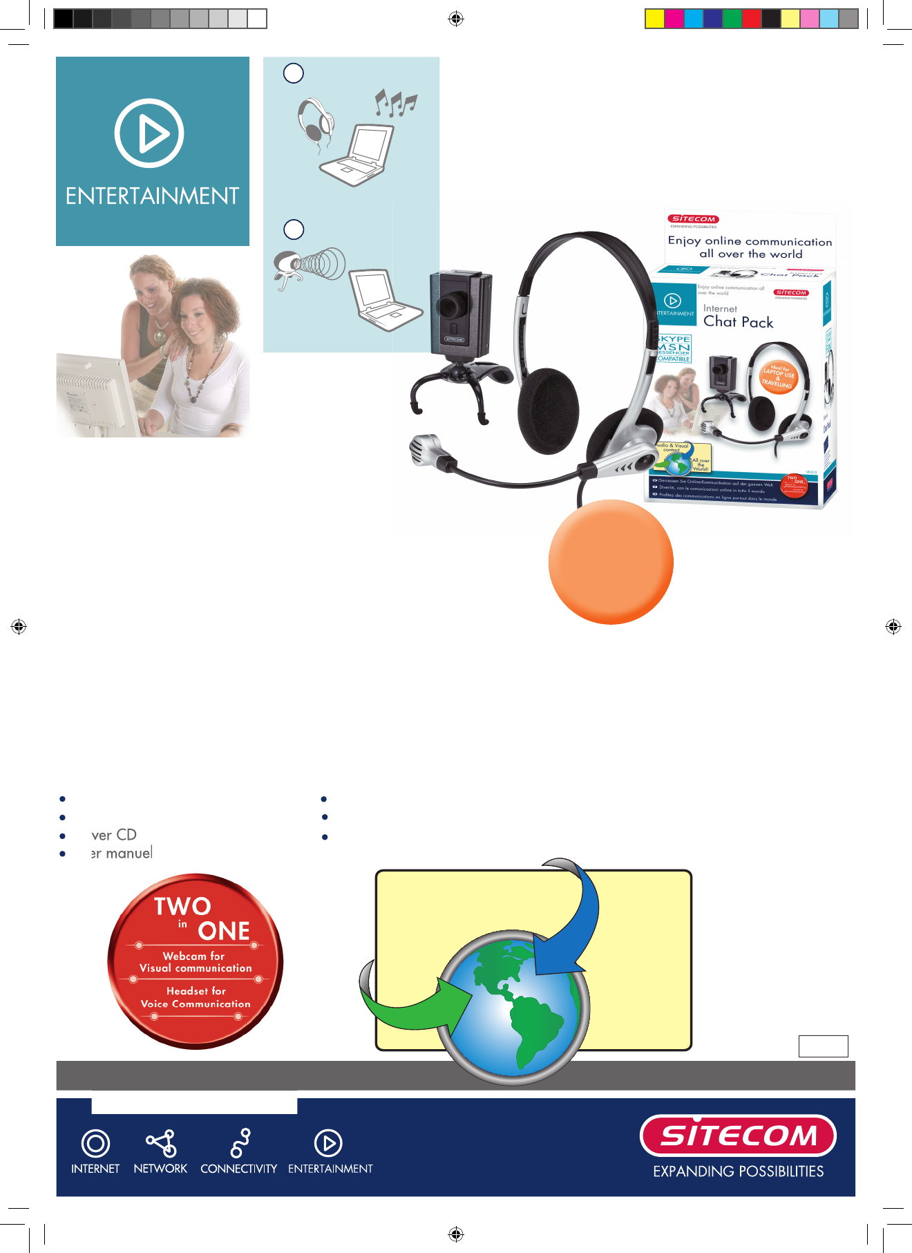 VP-0106/24This Chat Pack guarantees uninterrupted online chatting! Connect the webcam and headset to your PC or laptop, and you have all the tools you